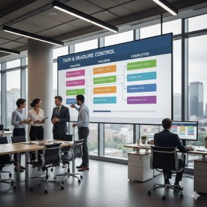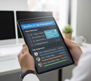 - Task Management: Assign, prioritise, and track tasks across your team for full visibility and accountability.