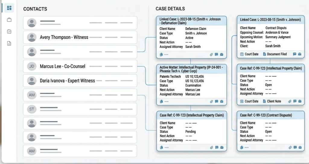 - Link contacts directly to cases and matters