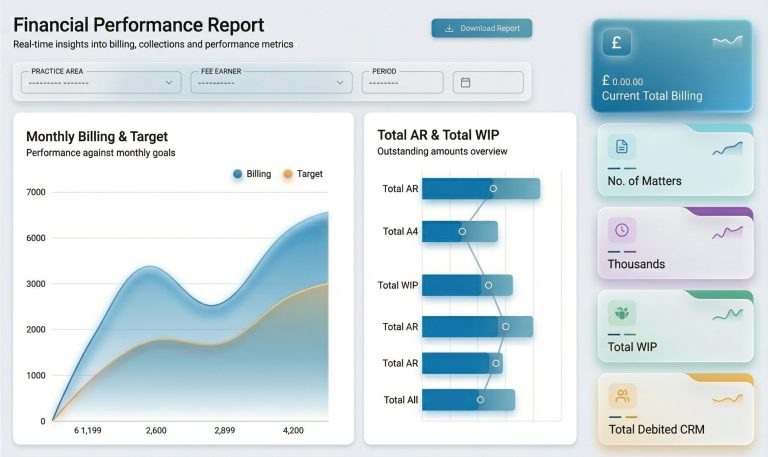 Make better business decisions with real-time insights into matter progress, team performance, billing activity, and overall firm productivity, through clear dashboards and easy-to-use reports.
